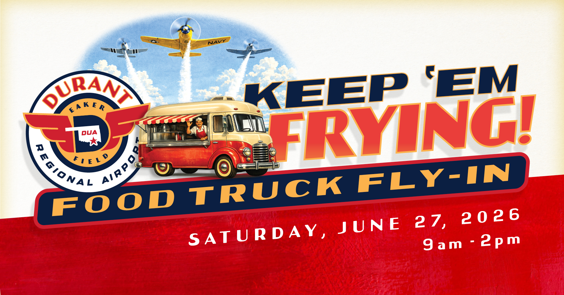 Durant Regional Airport’s first annual “Keep ’em Frying Food Truck Fly-In” is a dynamic community event bringing together aviation enthusiasts, families, and food lovers from across the region. This year, your business can take center stage.